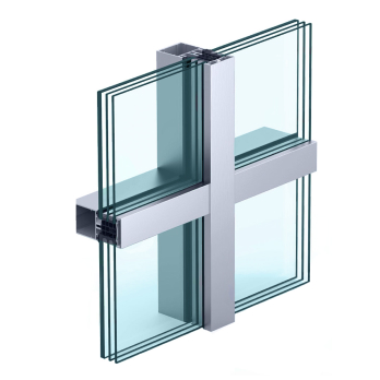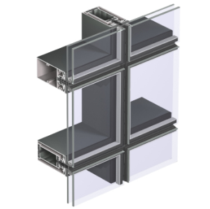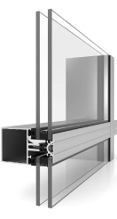 Полуструктурное остекление. Этот метод сочетает прочность каркасно-ригельной системы и привлекательность структурного остекления. Стекло или стеклопакет фиксируются на профиль тонкими прижимными штапиками, аккуратно окантовывающими стекло и минимально перекрывающими его внешний вид. В отличие от полностью структурного остекления, здесь возможно использование больших стеклопакетов и интеграция открывающихся элементов.